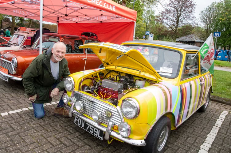 Tony Longhuirst with his 1973 Mini inspired by a design created by a fashion designer Paul Smith (Forest Review)