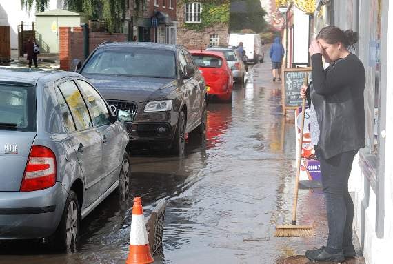 Staff from the Polish supermarket had to sweep water back into the road to avoid it entering the building.