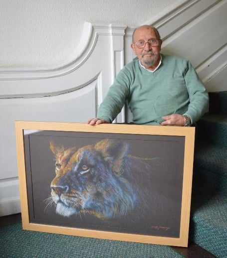 Geoff Jennings, of Pontshill, has won the Keith Shackleton Award, a prestigious award for his pastel piece exhibited at the Wildlife Art Society International Exhibition at Nature in Art 2019. The Keith Shackleton Award was given to the artist for his pastel and pencil drawing ‘Focussed’ which features the profile of a lioness.