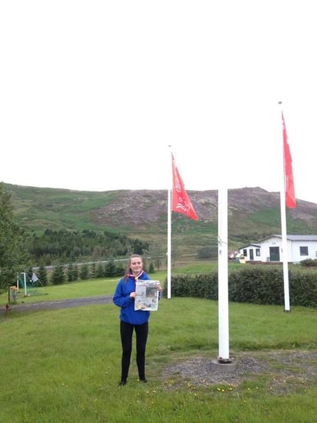 This is a picture of me with the Ross Gazette on my recent camping trip to Iceland with Midlands Girl Guiding.