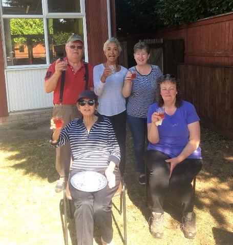 Jobs on the list included removing ivy from the fence, painting the fence, cleaning the fascias and the windows, sweeping the car park and bagging up leaves and weeds. In the hot sun the work was undertaken with a good spirit and the break for lunch and a glass of Prosecco was enjoyed by all.