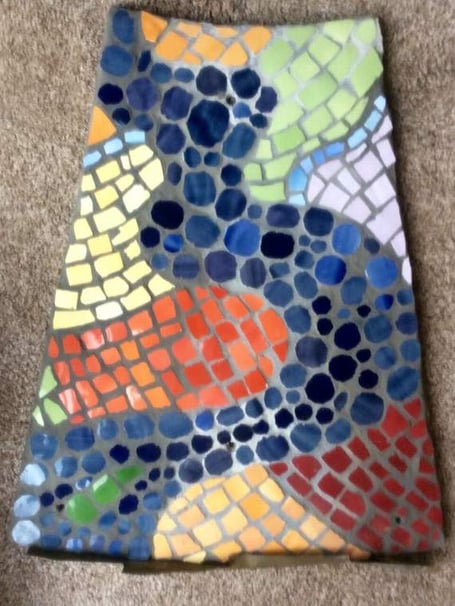 Rosie Callinan, the mosaic artist at Made in Ross, researched the best type of cement to use and found a flexible one which should allow the wood base to move a little (as wood does when it is in the elements). The grout chosen is also designed for outside use.