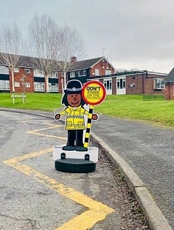 They have put up "mini PCs" outside the school, with signs telling drivers to park considerately.