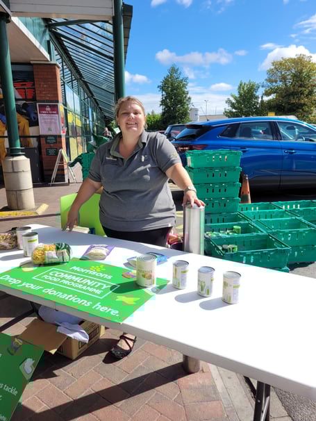 She was on the lookout for enough dried goods such as pasta, rice, cereal, jarred sauces, tinned veg, tinned meat, custard, rice pudding, and jams to fill up an entire Morrisons parking space.