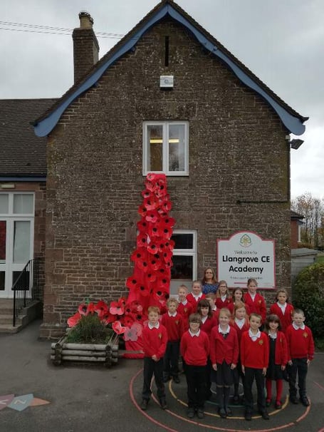 Inspired by the ‘Weeping Window’ of poppies on display at Hereford Cathedral in the spring, the children of Acorn Class at Llangrove CE Academy, and the after school Art Club have been busy painting wonderful poppies.