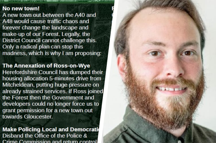 The Independent candidate for Drybrook and Lydbrook says in his election propaganda leaflet that “only a radical plan” can stop the “madness” of building a new garden town between the A40 and A48 which would “chaos and forever change the landscape and make-up of our Forest”.