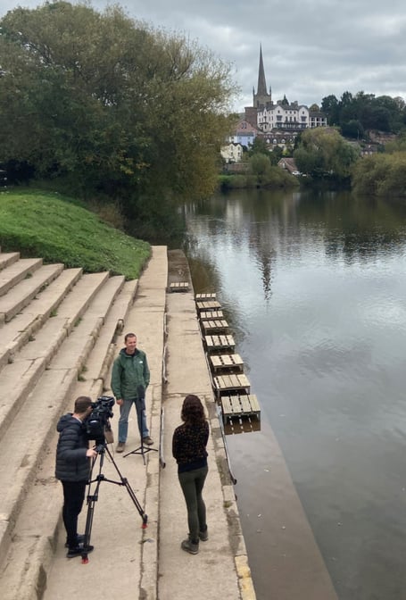 Stuart Smith from the Wye Salmon Association, who is managing a catchment wide programme of water quality testing, Rob Leather, Chairman of Ross-on-Wye Angling Club, and Trevor Hyde, who monitors water quality in Ross on a weekly basis, were interviewed for a three-part report due to be broadcast after the Gazette went to press last night (October 19) on ITV Central, Wales and the West Country.