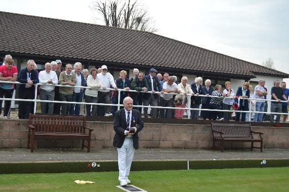 Before the eager bowlers got the first matches underway he also presented Rosemary Rigby, President of the Ross Action Committee with a cheque. This was for £750, the money raised by the club over the past year.