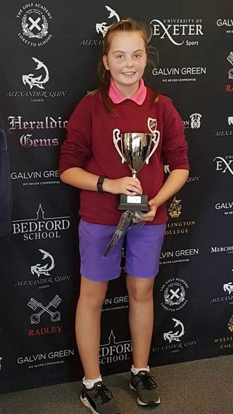 Abbie’s gross 83 nett 57 medal score made her the British Schools Ladies Junior nett Champion, deservedly winning her the Trophy and earning a two-shot-handicap reduction to 24 in a year in which she began with a 31 handicap.