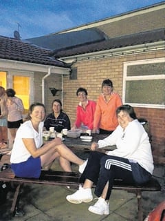 The well earned post-match tea, served outside, was going well until a giant rat scuttled over the ladies' feet, causing much panic and shrieking - and disapproving comments from some ladies still on court! The Ross Ladies submissively departed, happy enough with a 2-4 result against very stiff competition.